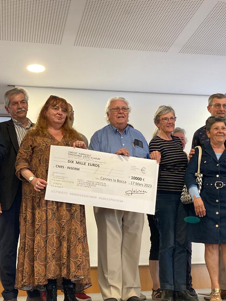 Ce jeudi 20 avril 2023, a eu lieu la remise d’un chèque de 10 000€ à nos chercheuses du CNRS et de l’INSERM, au Centre Culturel de la Mairie du Lavandou, en présence de la 1ère adjointe, de l’équipe France Cancer du Lavandou, de la Seyne-sur-Mer, et d’une partie de l’équipe de Cannes.