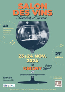 Depuis 1997, Grigny est le rendez-vous des amateurs de bons vins, des goûts et des saveurs des terroirs de France (40 stands). En venant nous rendre visite, vous ferez de belles découvertes viticoles et une bonne action !