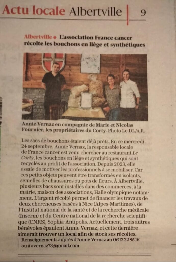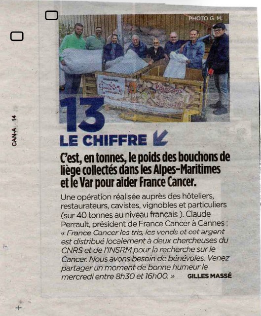 il nous a été remis des bouchons par Mme Sinquin 1ère adjointe, provenant de la Municipalité et TPM.