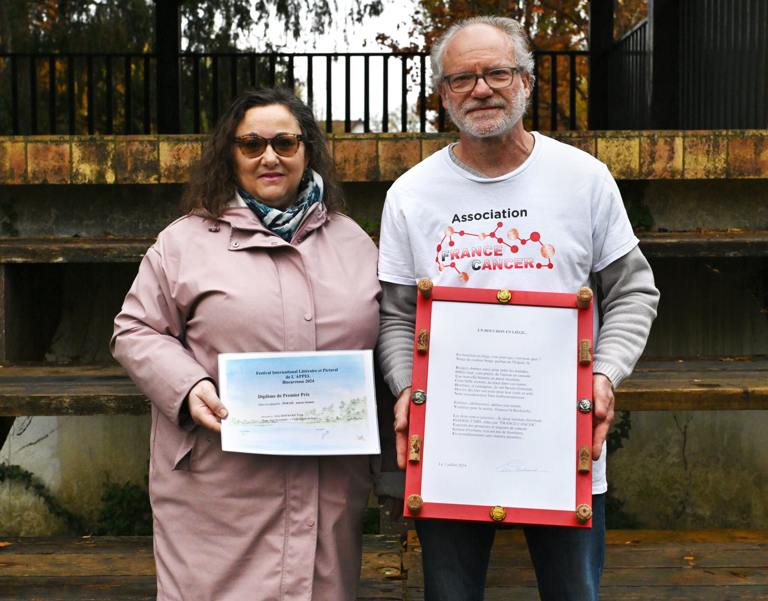 Au Festival International Littéraire et Pictural de l’APPEL (Biscarrosse 2024), Célia a reçu le Diplôme du 1er Prix dans la catégorie « Poésie-autres formes », pour un poème sur le bouchon.
